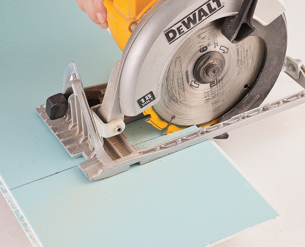 5. Measure the leftover distance precisely when you reach the end of a row and it becomes necessary to cut a panel in order to finish the row. Copy the same measurement onto a panel with the measuring tape, and draw a straight line across the width of the panel with the pencil and bracket. Cut the panel with the circular saw.
